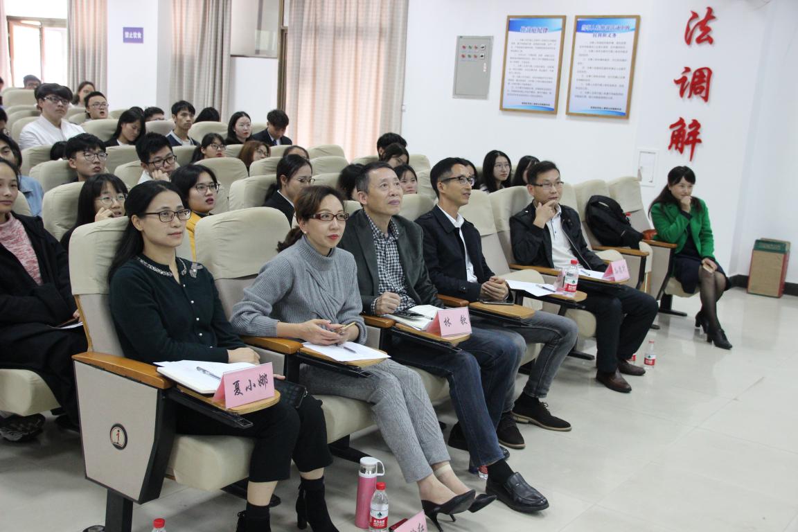 2018年11月14日下午,温州大学法政学院第十一届特色班级暨学习标兵评选大会在模拟法庭隆重举行,全院师生代表齐聚一堂共同学习交流班级和学风建设。担任本次评选大会的评委有法政学院党总支书记林钦老师、党总支副书记严玲红老师、溯初学区住宿管理科科长项炳池老师、学院教学科科长夏小娜老师、法政学院学生科科长孙德升老师。