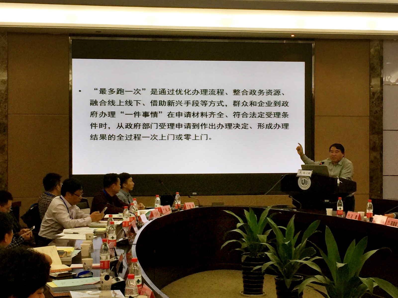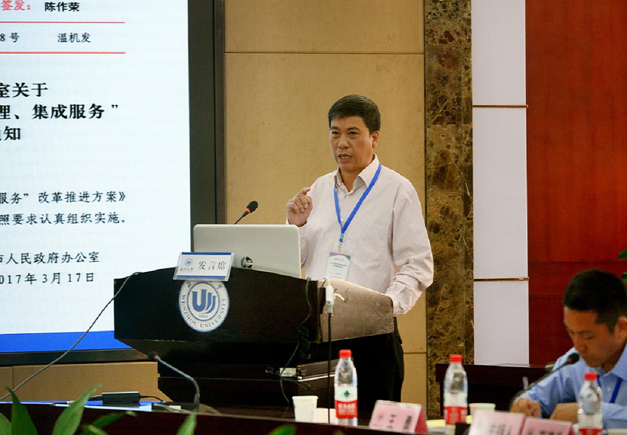 论坛开幕式由温州大学法政学院院长、地方政府绩效管理研究中心主任王宗正教授主持。温州大学党委副书记牟德刚教授、温州市社会科学界联合会卢达副主席分别致辞。温州大学法政学院副院长王勇副教授主持论坛主题报告环节,宁波大学商学院院长、浙江大学公共政策研究院副院长范柏乃教授作了《着力处理好前行中的十大关系,将"最多跑一次"改革进行到底》,全国政府绩效管理研究会副秘书长、苏州大学尚虎平教授作了《政府潜绩评估的内容维度及评估指标的实证筛选研究》,温州市行政审批管理办公室(市公共资源交易管理委员会办公室)主任、党组书记王延申作了《以"最多跑一次"为目标,深化审批制度改革》,上海交通大学中国城市治理研究院韩志明教授作了《国家治理的知识转向——以公民参与为中心的分析》,苏州大学党委宣传部副部长余敏江教授作了《推进地方环境治理现代化的三维路径》,温州大学地方政府绩效管理研究中心执行主任付翠莲教授作了《意义、逻辑、路径:基于"最多跑一次"改革的分析》的主旨发言。