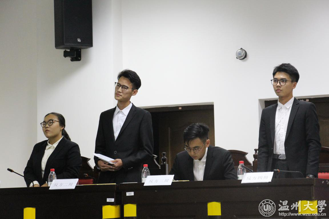 2017年10月29日晚,温州大学法政学院第三届思明杯新生辩论赛暨"与信仰对话"主题辩论赛在模拟法庭隆重开幕。担任本次辩论赛的评委是:邱杓丹老师、贲宁、章方正、徐涛和王晶晶。