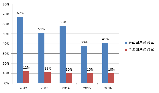 法政学院法学专业学生近五年司法考试通过率