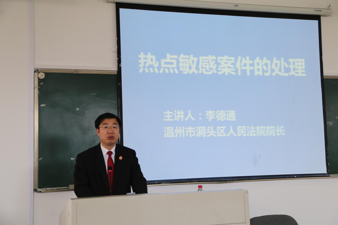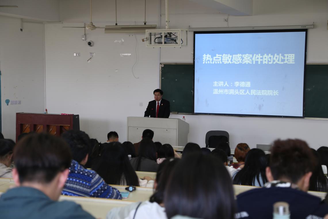 4月13日下午,洞头法院党组书记、院长李德通莅临我院,为"温州大学法律文化宣传月"作了题为《热点、敏感案件的处理》的专题讲座。