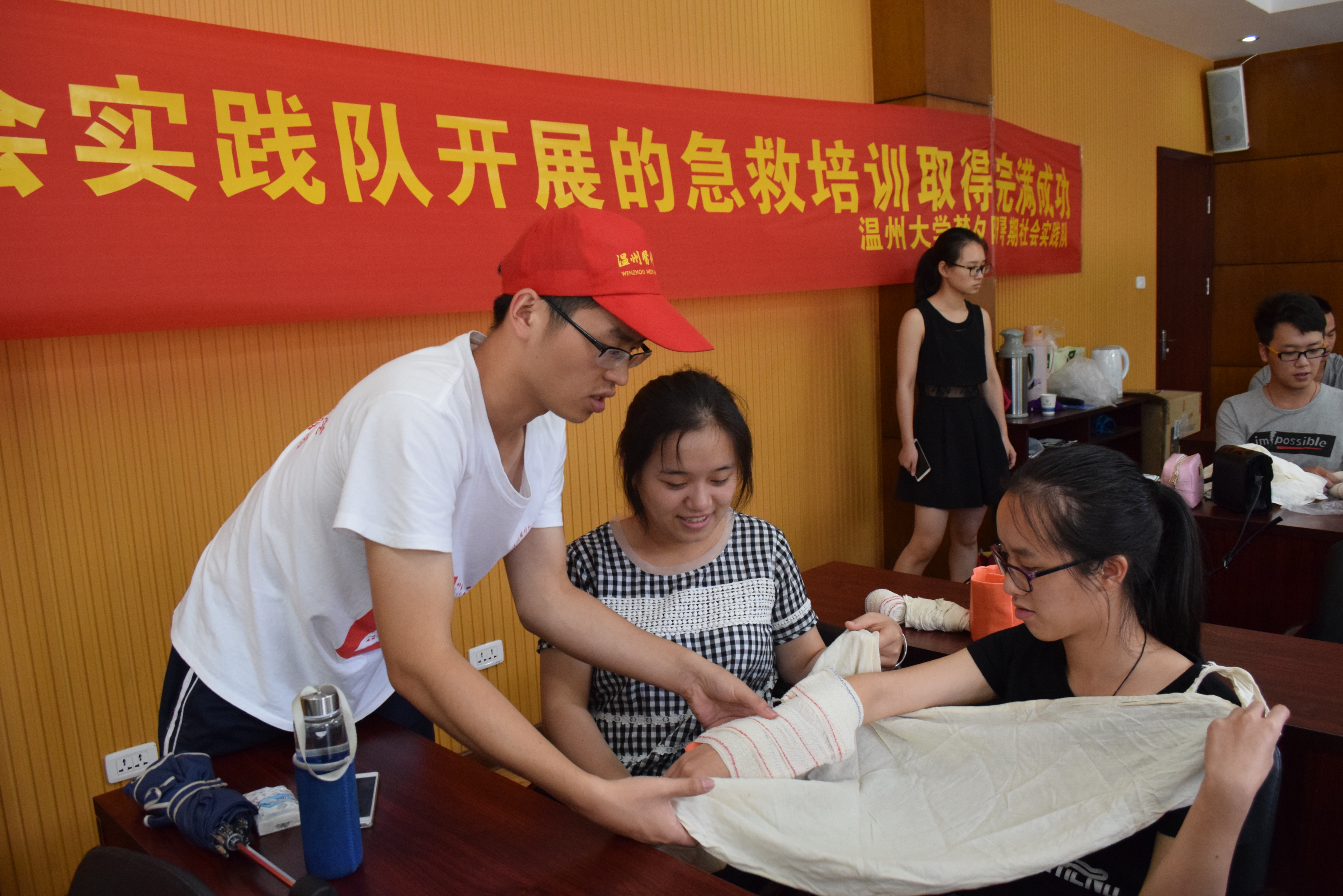 我校梦夕阳暑期社会实践队由温州大学星之火防灾教育协会主办,实践队自三年前成立以来,在浙江省救灾协会、温州市民政局、瓯海区民政局、温州大学校团委的指导和支持下,以"增强社会防灾减灾意识,提升居民防灾减灾能力"为宗旨,在温州市民政局、瓯海区民政局的大力支持下,积极深入温州市瓯海区、龙湾区各个街道、社区、学校组织开展医疗急救知识与技能培训、社区防灾减灾知识宣讲、社区防灾减灾应急演练、中小学防灾减灾知识宣讲、应急演、防灾减灾素质拓展等防灾减灾教育和应急演练活动,在社区防灾减灾教育和应急演练方面做了大量工作,受到社会各界的广泛好评,先后被人民网、凤凰网、中国青年网、温州网等多家媒体报道。