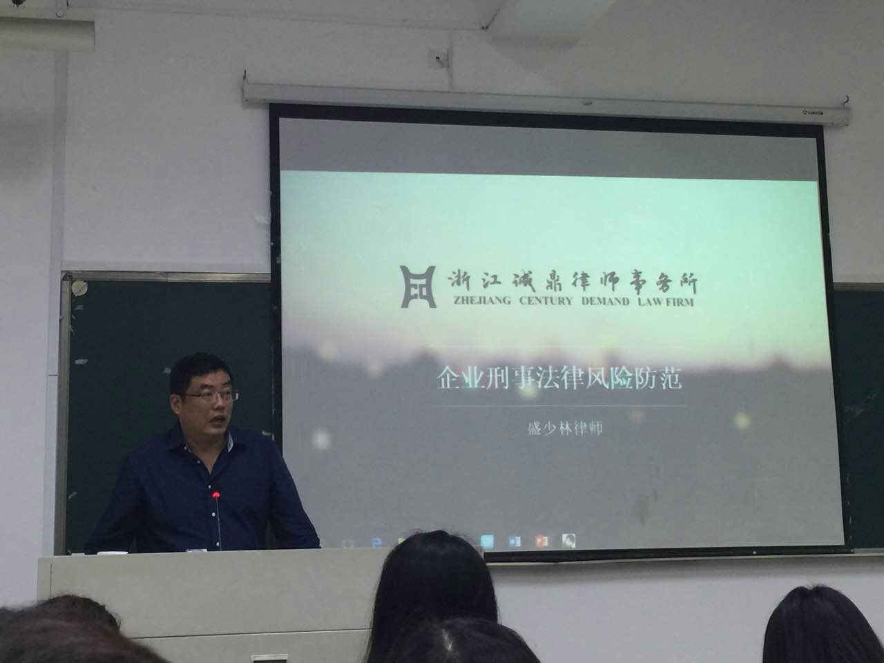 日晚六点半,浙江诚鼎律师事务所盛少林律师用质朴又真切的语言为我们带来了一场以"企业刑事法律风险防范"为主题的精彩讲座。
