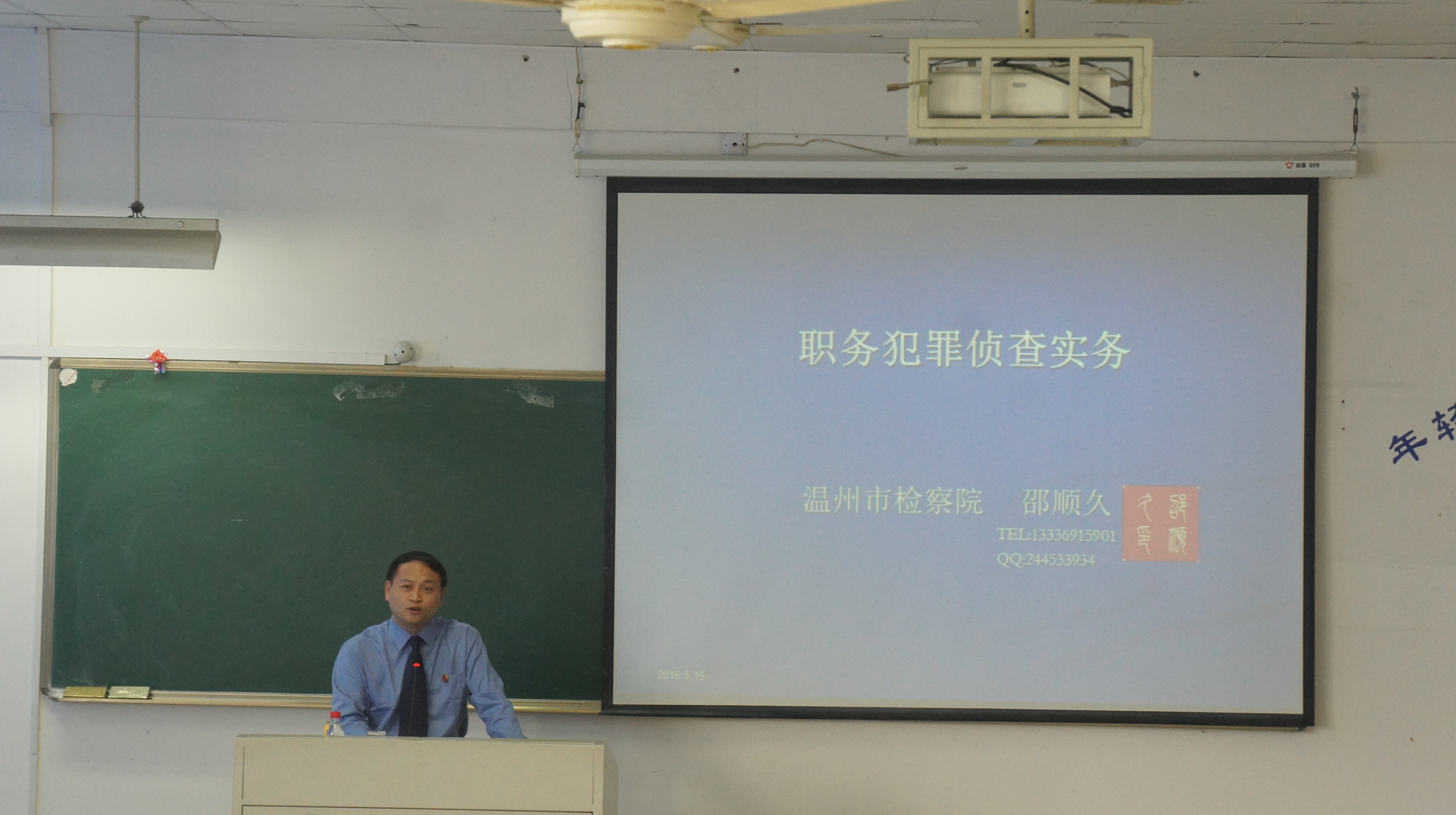 2016年5月19日下午1:30,《检察实务》第九讲开讲,市检察院反渎局副局长邵顺久检察官给大家讲授"职务犯罪的侦查实务"。
