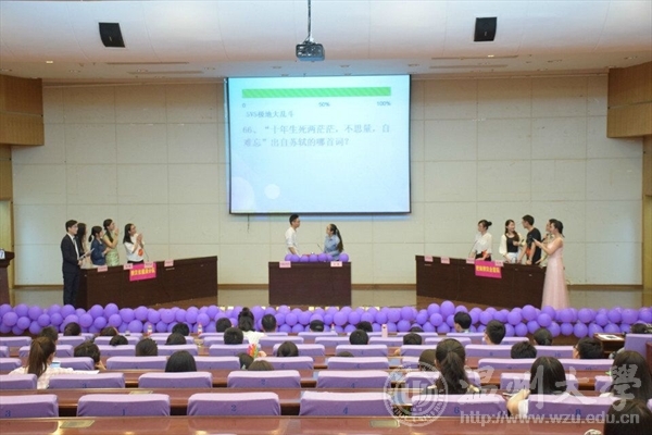 2016年5月12日晚,温州大学第二届研究生"一站到底"百科知识竞赛决赛在育英图书馆二楼报告厅如期举行。本次活动由温州大学研究生部主办,体育学院、物电学院、法政学院研究生会承办。出席此次比赛的嘉宾有校研究生部副部长董新娇、研究生部综合科科长周敬业、体育学院副院长叶健强、法政学院学生科白昌科、物电学院学生科杨鹏、林莘莘六位老师。