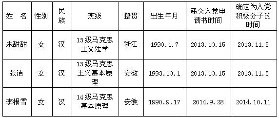 经中共温州大学法政学院研究生党支部培养考察,认为以下同志(具体名单附后)已基本具备中共预备党员条件,拟于近期发展,现予以公示。