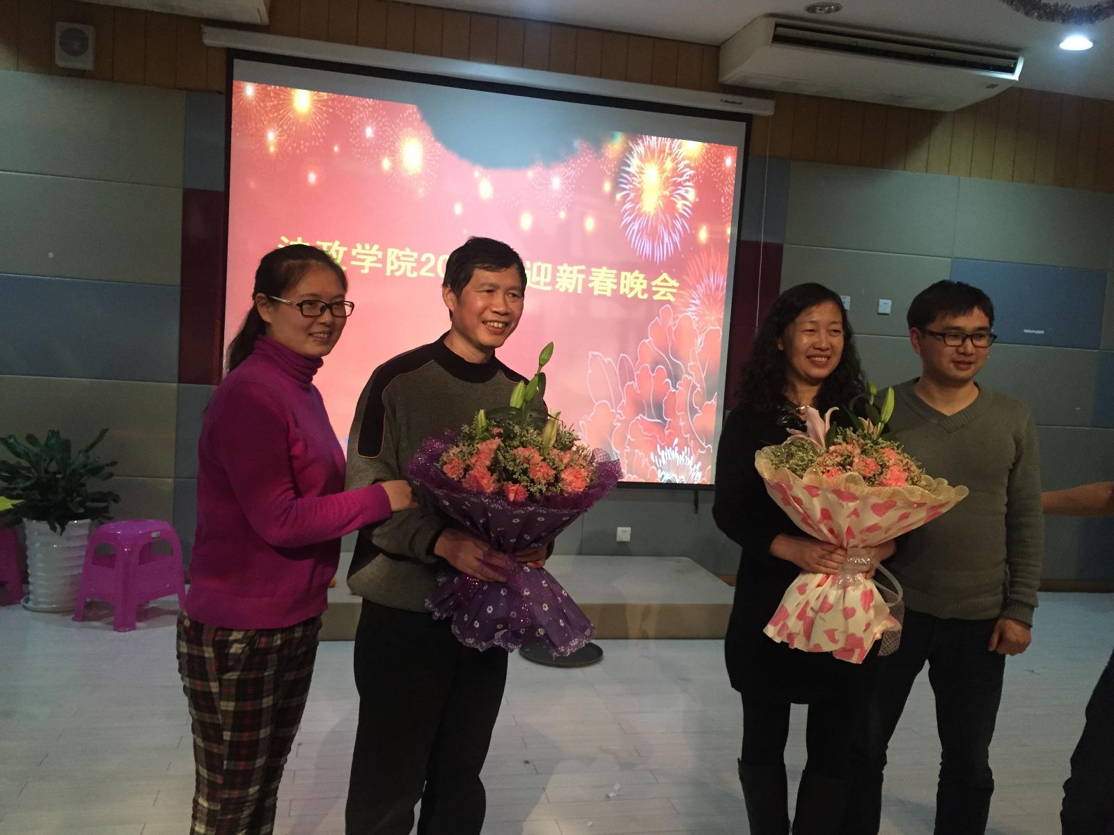 对于两位教授的退休,全院的老师们内心深感复杂,一方面为他们能够以如此辉煌的业绩光荣退休感到无比高兴,这是我们每一位老师都孜孜追求的梦想啊!另一方面,对于他们的退休离队深感无限不舍。在2015年1月17日学院新年晚会上,专门安排了对两位教授的欢送仪式。学院最年轻的两位男女教师代表大家向他们敬献了鲜花,院长和教师代表分别致辞感谢、道别和祝福。两位教授自己也发表了退休时刻的深刻感言。大家纷纷用回忆、拥抱、合影、掌声甚至泪光,表达了对两位教授的依依之情和深切敬佩。他们把自己的青春年华奉献给了法政。他们是最值得人们尊敬的法政人!