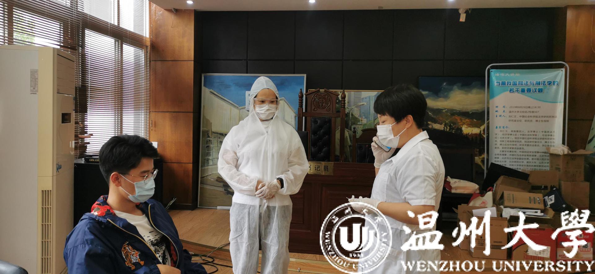 根据模拟情境,在成人影院 教室内发现一例发热、咳嗽有新冠肺炎疑似症状学生,学院立即启动应急处置机制,依次进行了任课老师发现并隔离疑似症状学生、联系第一应急响应人、辅导员到场了解情况、医生到场测温、报告处置等规范处置,先后在教室、临时隔离室等地进行流程演练。整个过程指挥有力,环节紧凑,应急人员分工明确,总体完成良好。