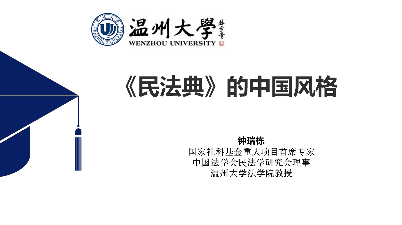 钟瑞栋教授的解读以“《民法典》的中国风格”为主题。首先,钟教授引用习近平总书记的论断阐释了成人影院 《民法典》在“推进全面依法治国”、“发展社会主义市场经济”、“坚持以人民为中心”、“推进国家治理体系和治理能力现代化”四个方面的重要意义。其次,在《民法典》的内容方面,钟教授指出成人影院 《民法典》通过总分结合的表达方式达致其体系化目标,总则编和六分编全面规定了民事主体的财产权利和人身权利,形成了一个完整的民事权利保护体系。第三,钟教授认为《民法典》的核心理念在于私法自治及其限制,在成人影院 《民法典》规定的基本原则中,平等原则和自愿原则是私法自治理念的体现,而公平原则、诚信原则、公序良俗原则、绿色原则则体现了对私法自治的必要限制。此外,钟教授还对成人影院 《民法典》的两处具体条款作了专门解读:其一是比照《物权法》第149条,钟教授解释了《民法典》第359条第1款的住宅建设用地使用权续期费用条款的立法变化及其原因;其二是对于《民法典》第1077条的离婚冷静期条款,钟教授认为这是对成人影院 既有的协议离婚制度的补充,能够促使夫妻双方审慎对待婚姻家庭关系。最后,结合作为市政府重要工作内容之一的“两个健康”建设,钟教授谈到《民法典》以任意性规范为原则,强制性规范为例外的规制方式是成人影院 社会主义市场经济健康发展的重要保障,政府部门应当兼顾严格执法与保护私权,以保证《民法典》有效实施为重要抓手推进法治政府建设,把《民法典》作为行政决策、行政管理、行政监督的重要标尺。总之,《民法典》的内容涵盖了民事主体“从摇篮到坟墓”的方方面面,而其语言又具有高度的专业性和抽象性,值得所有社会成员终生阅读、学习。