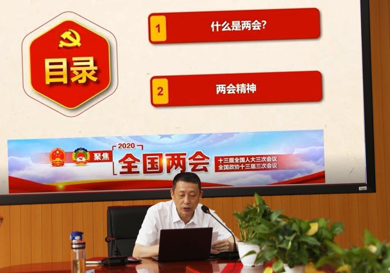 首先,林钦书记和王宗正院长就上一年的工作,对全体教职工进行述职。王院长还对学院出台的师资建设规划、高层次人才引进和科研培训等几个政策文件作了简要说明。林钦书记带领全体教职工学习两会精神,借助短片重点解析了2020全国两会的不同之处。