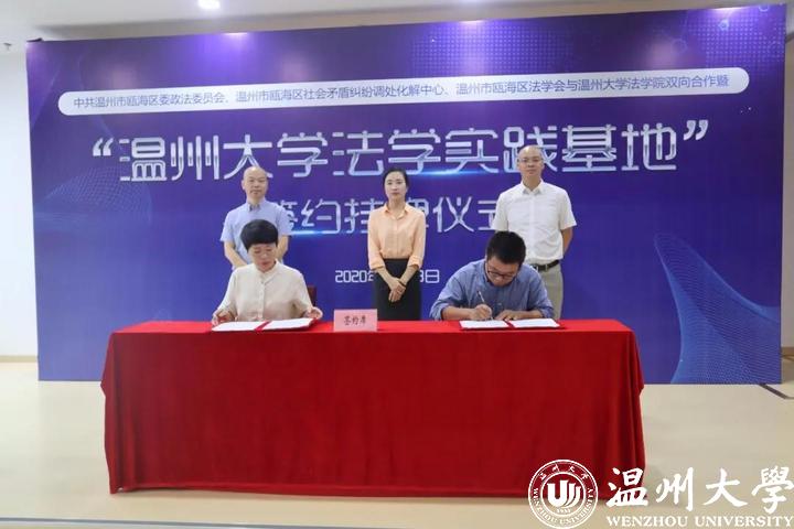 9月18日上午,瓯海区矛盾纠纷调处化解中心与成人影院-海外成人影视 合作签约暨“温州大学法学专业实践教学基地”揭牌仪式举行。瓯海区区委副书记钱素文参加仪式并致辞,成人影院-海外成人影视 院长王宗正、副院长周湖勇等参加仪式。