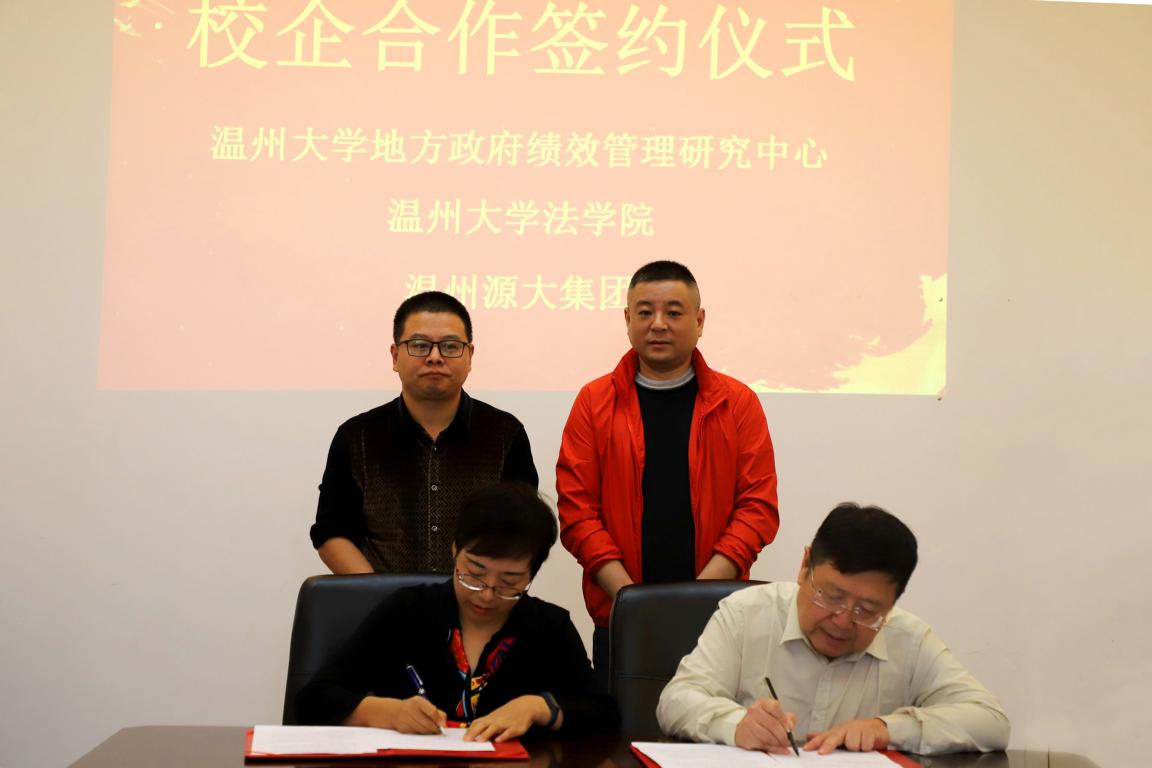 10月21日下午,成人影院-海外成人影视 副院长周湖勇、地方政府绩效管理研究中心执行主任付翠莲、行政管理系系主任朱家德等一行四人赴源大集团考察交流,双方签订了校企合作双向协议,并向源大集团授予“地方政府绩效管理研究中心实践教学基地”、“成人影院 行政管理系实践教学基地”两块牌子。双方就大学生就业实习、课题调研、培训服务等方面建立深度合作关系。温州大学地方政府绩效管理研究中心、成人影院-海外成人影视 行政管理专业在源大挂牌建立了实践教学基地,双方将共同探索专业人才培养、校企合作新模式。