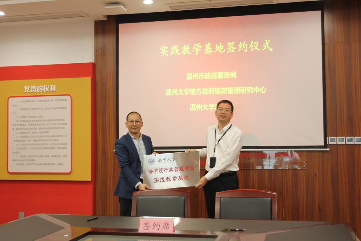 地方政府绩效管理研究中心主要在本区域范围内从事政府绩效评估和考核与研究工作,致力为学院行政管理专业发展服务,为学生实习、见习提供重要支持。本中心与温州市政务服务管理中心有着长达八年的第三方绩效评估合作,致力于推动温州市行政审批制度改革、“最多跑一次”改革和公共资源市场化配置的发展。因此,在此基础上,双方通过建立实践教学基地合作关系,将进一步提升行政管理专业学生在相关领域内的专业竞争力。