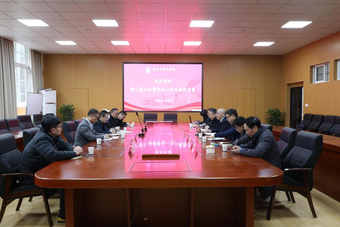 12月22日下午,澳门濠江法律学社王禹社长一行七人来访成人影院 。在参观我院模拟法庭与劳动仲裁派出庭后,双方在法学楼103室举行座谈会。座谈会由成人影院 缪心毫副院长主持,王宗正院长、林钦书记及李勇军等老师共7人参加了座谈会。