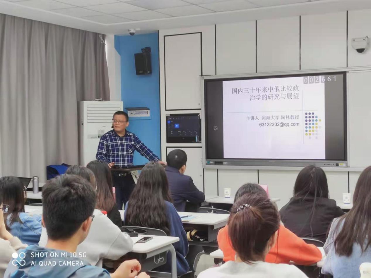 建党100周年系列庆祝活动逐一拉开序幕之际,3月25日上午9时整,河海大学公共管理学院政治学研究所陶林教授在成人影院 209智慧教室开设了一场以“国内三十年来中俄比较政治学的研究与展望”为主题的学术研讨沙龙,本次沙龙由缪心毫副院长主持,陈步雷教授、王勇教授、朱婉菁博士、许晋铭博士、谢安民博士、曾祥明博士等一同出席本次沙龙。