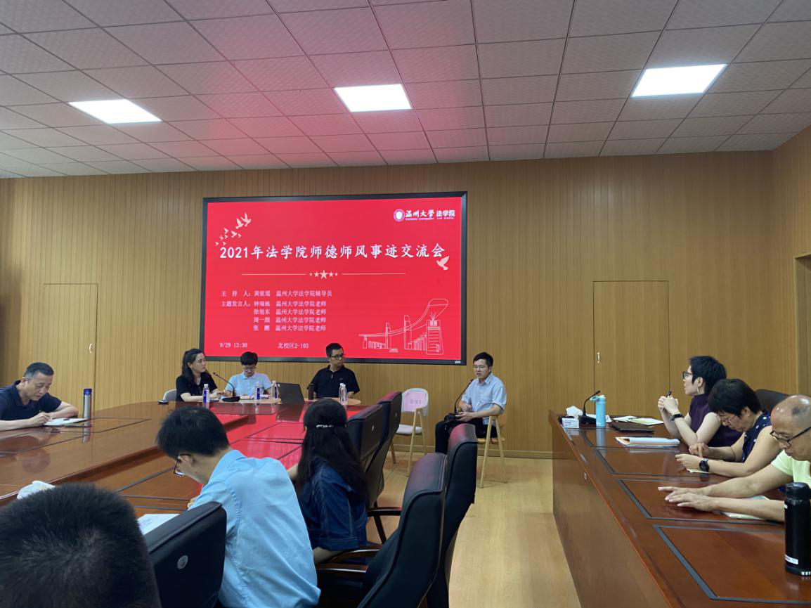 9月29日下午,成人影院 在北校区2号楼103会议室召开2021年学院师德师风事迹交流会。会议邀请钟瑞栋、徐旭东、周一颜、张鹏四位老师做师德师风事迹分享,辅导员黄依瑶主持会议,学院全体教工参加。