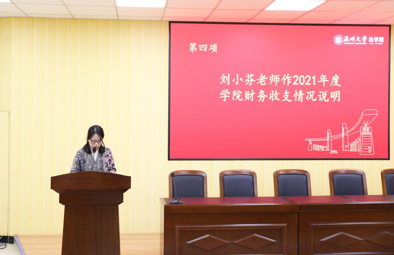 办公室副主任刘小芬对学院2021年度财务收支情况进行了详细说明。