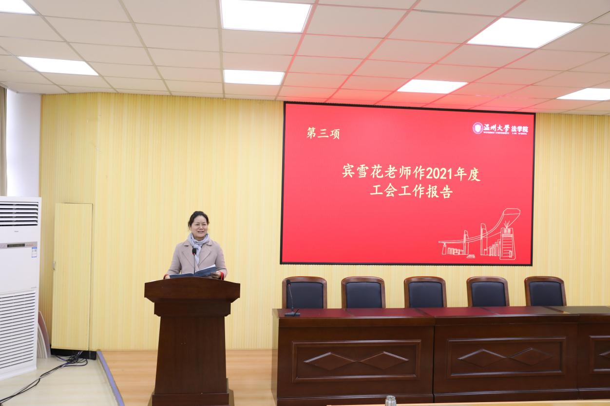 学院分工会主席宾雪花老师作《成人影院-海外成人影视 2021年度工会工作报告》,报告回顾了学院第五届工会委员会在过去的一年里全面履行的工会职责,较好地完成了工会的各项工作任务。同时对学院领导和全体老师对工会工作的配合和支持予以衷心的感谢。