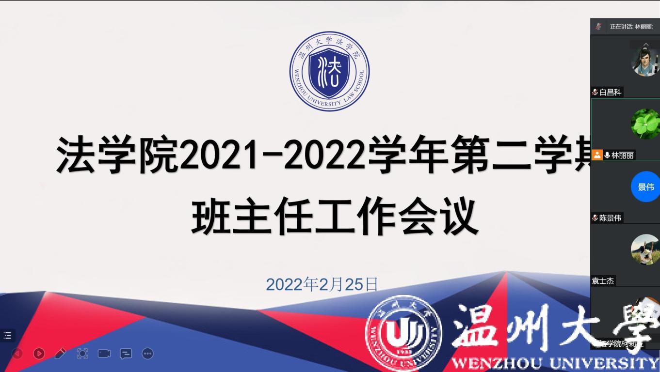 2月25日中午,我院在腾讯会议室召开新学期全体班主任工作会议。学院党委副书记杨振海、学工办主任林丽丽及全体辅导员和全体班主任参加本次会议。会议由党委副书记杨振海主持。