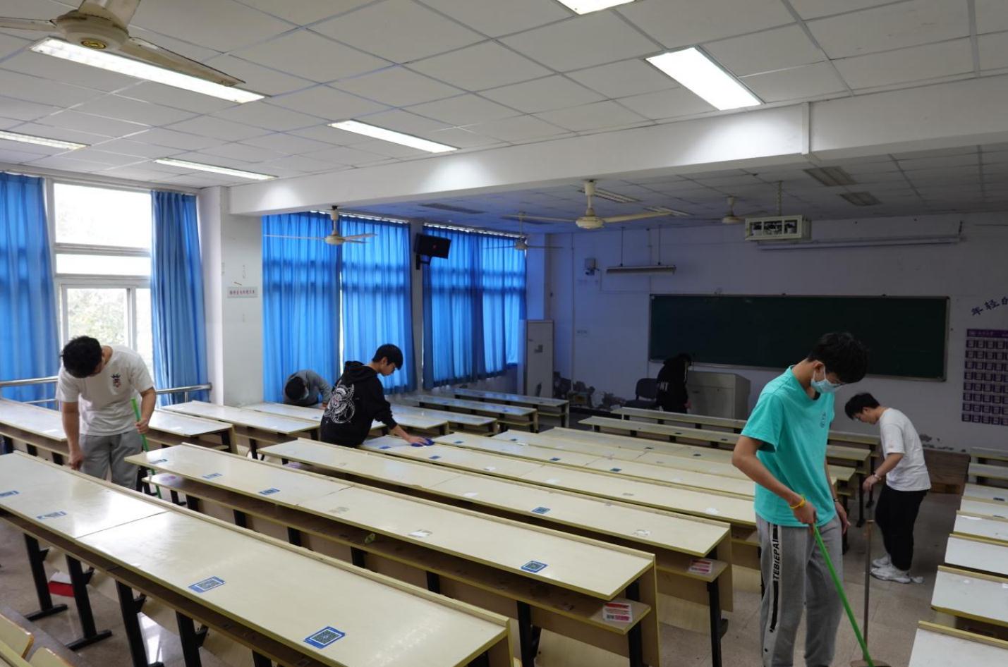 经过志愿者们的辛勤劳动,教室变得一尘不染,课桌排列整齐。大家都很期待下一次上课的时候,老师和同学们都能为此眼前一亮,以更加愉悦的心情进行教学活动。