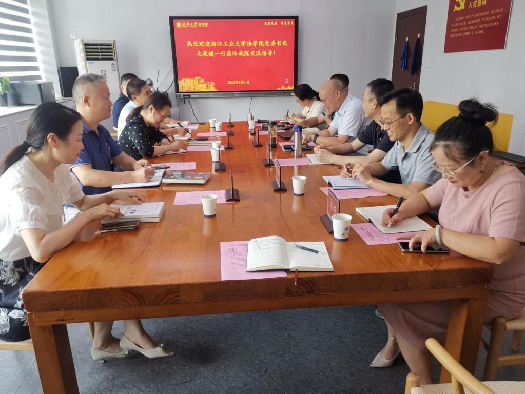 9月22日下午,浙江工业大学成人影院 党委书记毛筱媛、副院长张友连、证据实验室主任吴习彧、办公室主任高周荣等一行莅临我院交流座谈,学院院长王宗正、党委书记林钦、副院长周湖勇、民商经济法系主任李勇军、法律系主任谢丽珍、国际经济法系主任李娟、办公室主任刘小芬等出席座谈会。