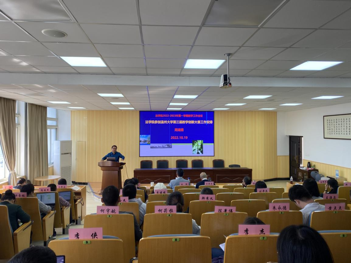 副院长周湖勇对教学工作进行安排。他鼓励教师参加温州大学第三届教学创新大赛,以赛促建,提升学院一流专业建设水平。并注重提升课堂教学水平,潜心育人、关爱学生,将更多精力投入课堂教学中。
