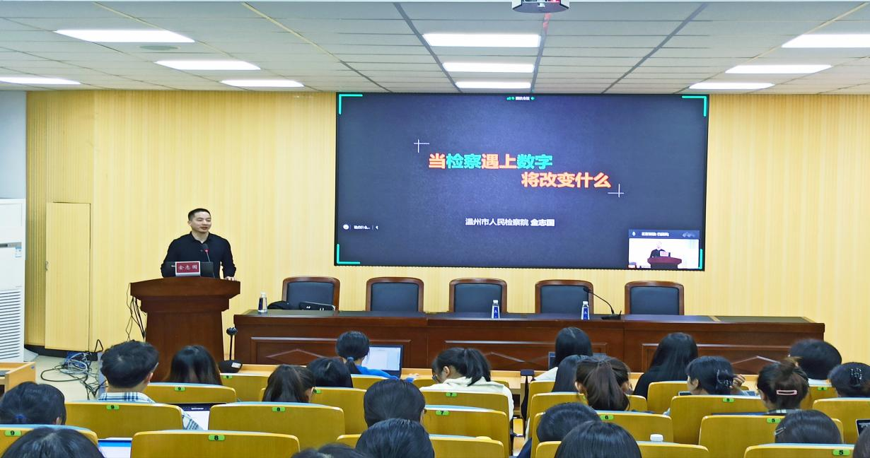 2022年11月9日晚6点半,温州市人民检察院金志国检察官应邀作客“罗山法律实务论坛”,为成人影院 师生带来题为《当检察遇上数字》的讲座。本次讲座由成人影院-海外成人影视 副院长周一颜主持,采取了线上线下相结合的方式,在北校区成人影院 301教室和腾讯会议直播间,谢丽珍老师、白兴科老师,部分21级研究生、22级研究生及全体20级法学本科生共有三百余人参加了此次讲座。