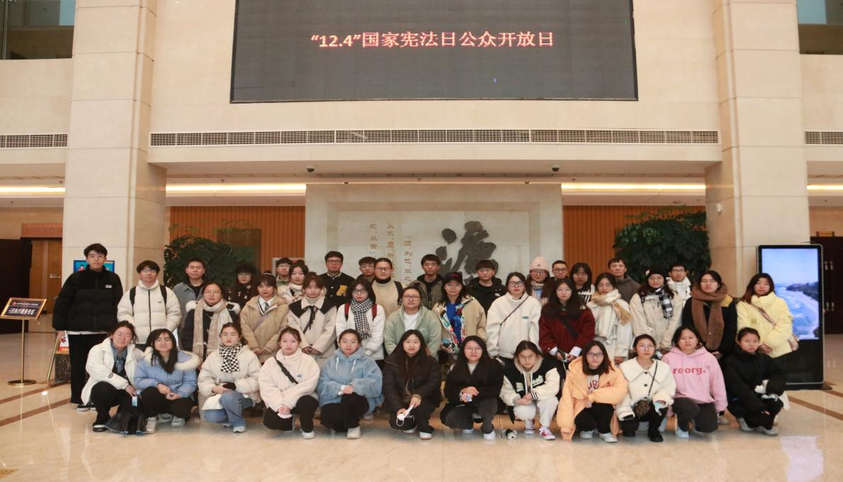 同学们亲身体验审判庭内部座位及构造后,讲解人员将我们带至办事大厅,并参观了两侧的浮雕。之后,重点讲解了大厅中间的“灋”字,为同学们讲解了该字蕴含的重大意义。