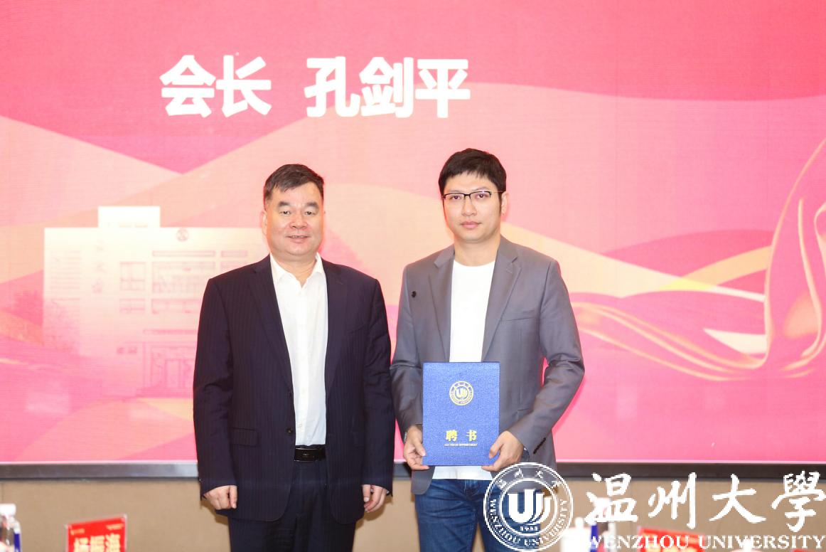 徐和昆副校长向新当选的成人影院 校友会会长孔剑平授牌
