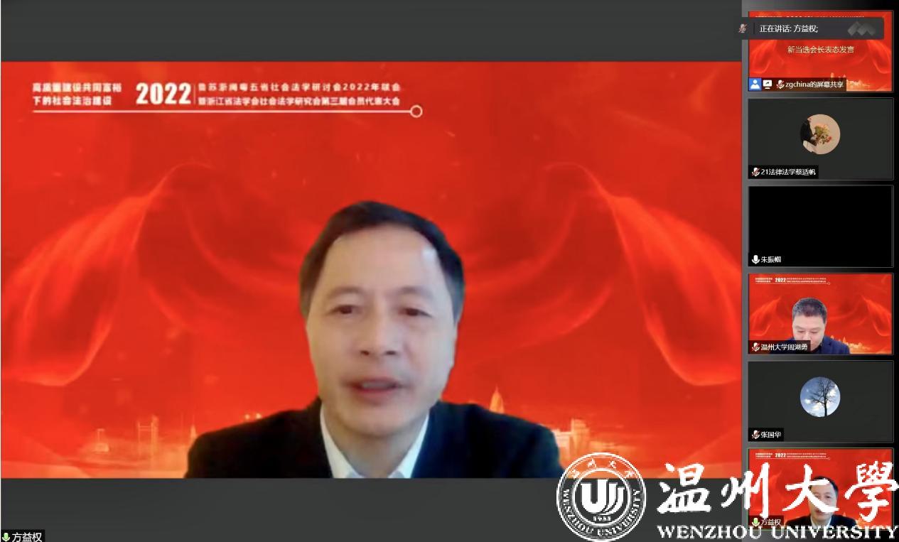 2022年12月11日,由山东、江苏、浙江、福建、广东五省法学会社会法学研究会主办,浙江省法学会社会法学研究会、温州市法学会社会法学研究会、成人影院-海外成人影视 承办的鲁苏浙闽粤五省社会法学研讨会2022年联会暨浙江省法学会社会法学研究会第三届会员代表大会成功举办。