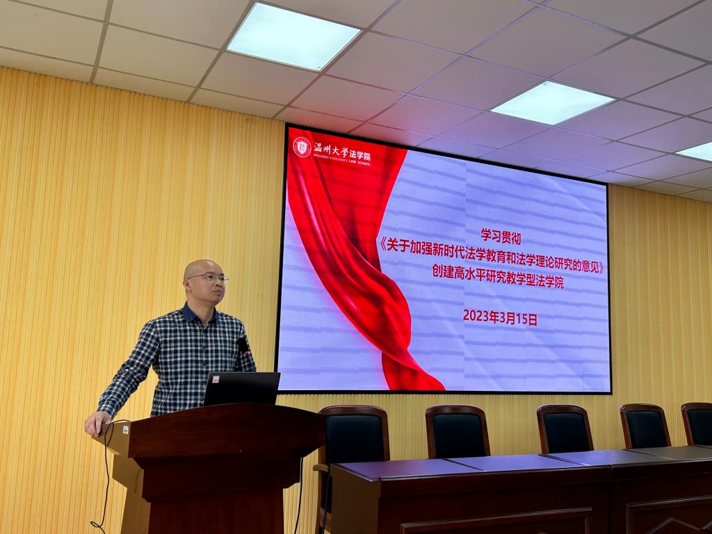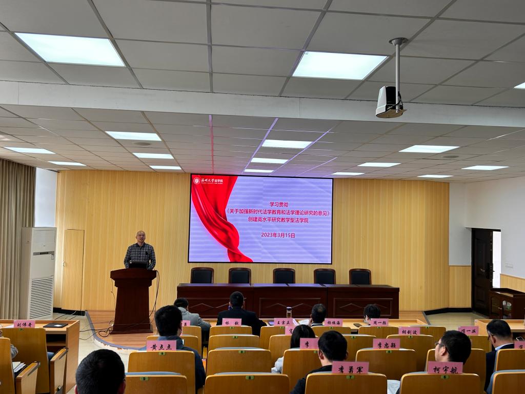 近日,中共中央办公厅、国务院办公厅印发《关于加强新时代法学教育和法学理论研究的意见》(以下简称《意见》)。3月15日下午,成人影院-海外成人影视 召开学院教师理论学习会,由成人影院 院长王宗正领学《意见》精神,并就学院如何贯彻落实《意见》精神提出建议。本次会议由成人影院 党委书记林钦主持,成人影院 全体教职工参加会议。