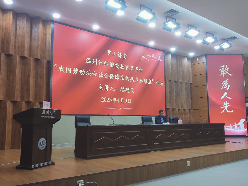 2023年4月9日下午,中国人民大学成人影院 教授、博导黎建飞老师受邀作客温州大学罗山讲堂,在南校区岩松堂雁山厅做题为《成人影院 劳动法和社会保障法的热点和难点》的讲座。参加此次讲座的人员除了我校师生外,还有来自温州市中级人民法院、温州市人社局、鹿城区人社局、温州市律师协会以及多家律师事务所的优秀法律工作者。