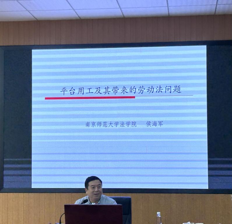随后侯海军副教授以“平台用工及其带来的劳动法问题”为主题展开讲述,主要讨论了互联网平台企业用工管理方式的演进,“网络状全外包”已经成为平台用工方式及其对劳动关系认定的影响,平台从业人员的复杂类别,劳动关系认定标准“两分法”和“三分法”之争以及劳动法因此面临的挑战与应对等。