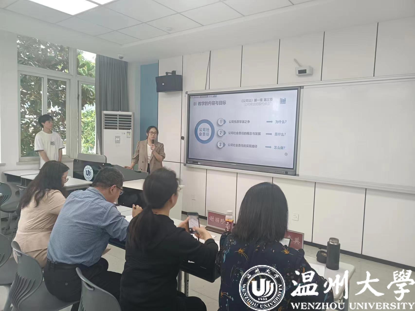 展示完毕后,评委对参赛青年教师的讲课作了点评。谢丽珍老师肯定了参赛教师在教学上取得了很大的进步,现场表现有许多教学亮点,让人耳目一新同时就教学设计课件优化、板书设计等方面提出了一些建设性的建议。刘奇英老师也结合自己的比赛经验,传授青年教师如何讲好课堂故事的一些具体方法。李娟老师也提出了在法科课程中需要加强提升“以法报国”的课程思政元素。