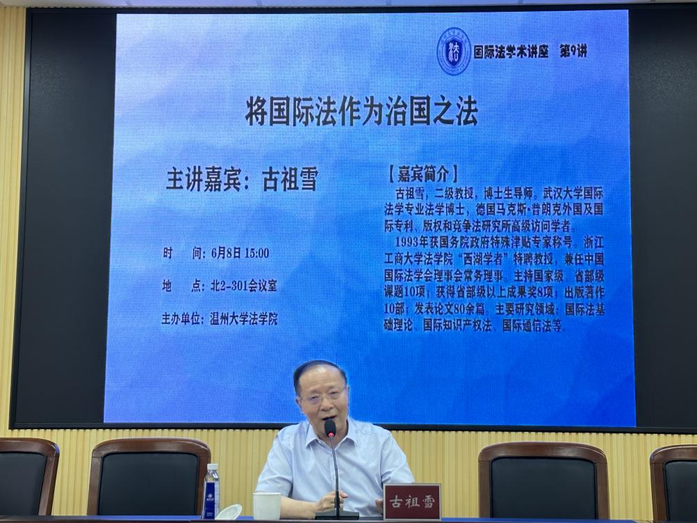 2023年6月8日下午,浙江工商大学成人影院 古祖雪教授莅临我校,为成人影院-海外成人影视 师生作了主题为“将国际法作为治国之法”的学术讲座。讲座由温州大学期刊社社长缪心毫主持,国际法系主任李娟及全系教师出席。参加本次讲座的还有成人影院 国际经贸规则专业及法学专业的诸多学生。