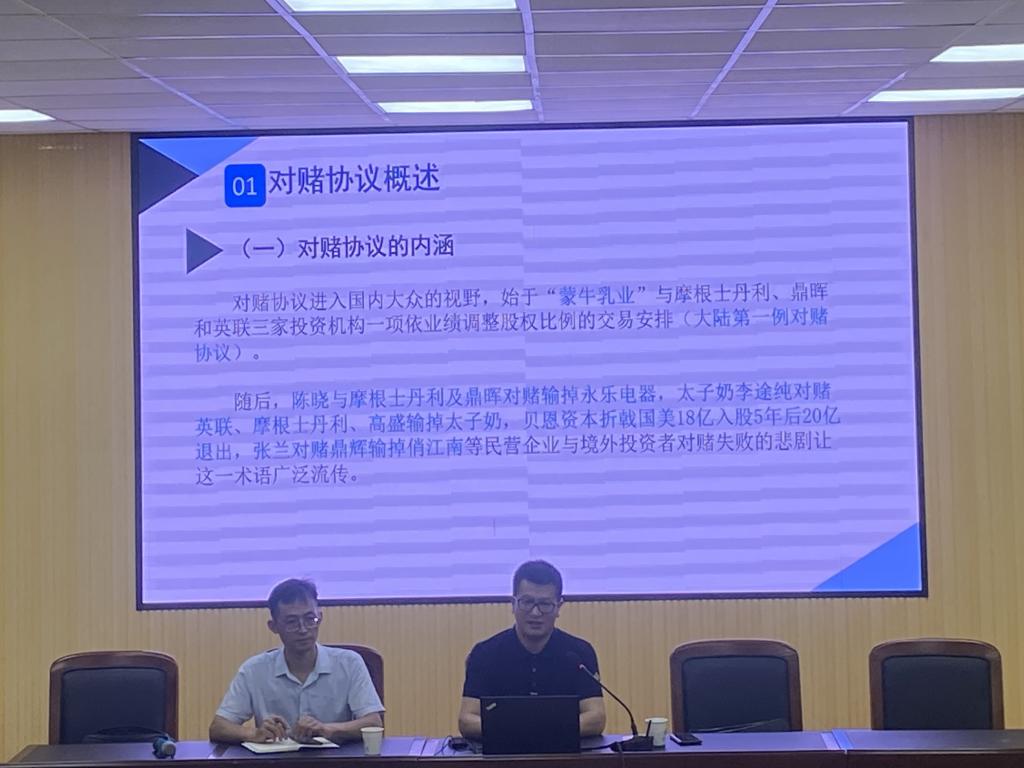 2023年6月20日晚上,温州市中级人民法院金融审判庭(民事审判第五庭)庭长陈如良应邀做客罗山法律实务论坛,为我院师生作“对赌协议效力认定的理论与实务”的专题讲座。本次讲座由我院法学专业负责人、民商经济法系主任李勇军副教授主持,法学专业本科生和研究生近百人到场聆听。