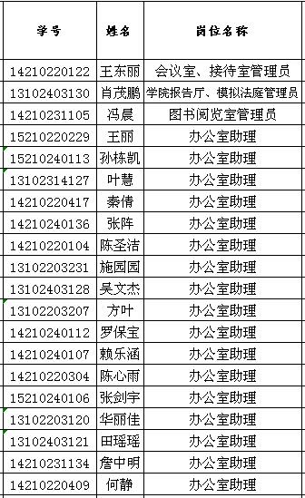 关于申请法政学院学生勤工助学岗位录用结果的公示