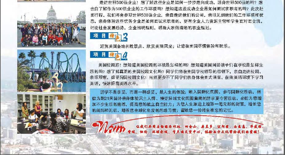 项目介绍、咨询、报名等信息详见附上的PDF文件《2013暑期赴美游学及文化体验夏令营项目介绍》。